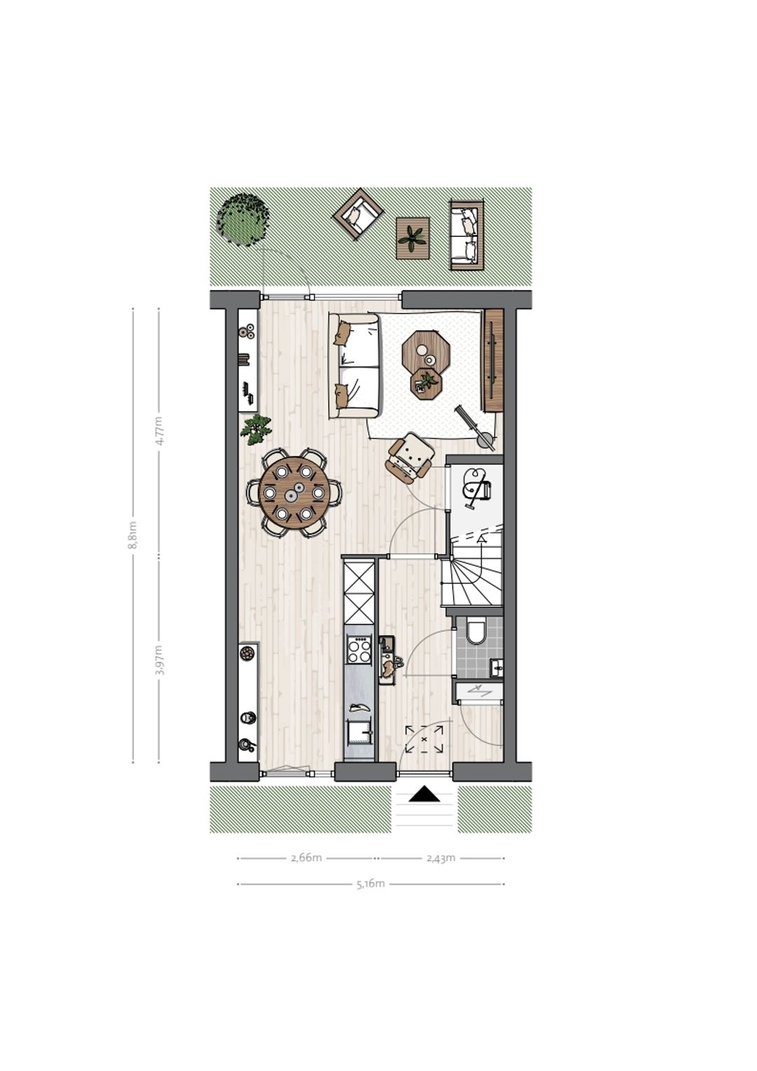 De begane grond: licht en verbonden met buiten