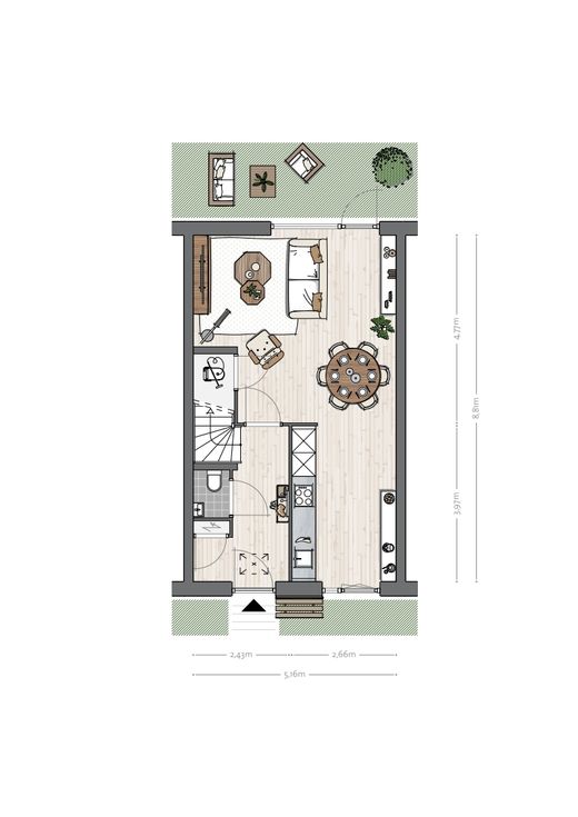 De begane grond: licht en verbonden met buiten